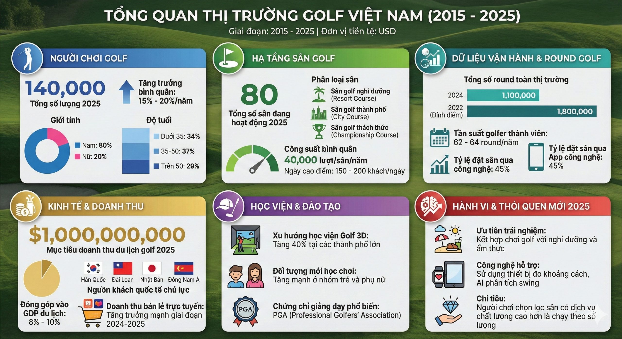 Giai đoạn 2024-2025 đánh dấu sự thay đổi sâu sắc trong hành vi của người chơi golf tại Việt Nam, được thúc đẩy bởi công nghệ và áp lực kinh tế.