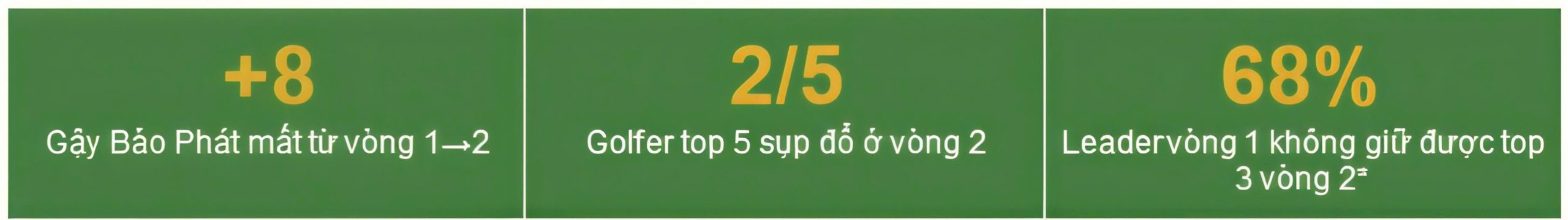 Vòng 2 (Áp lực) Sợ mất vị trí dẫn đầu Over-think từng cú, grip chặt Bogey chuỗi, mất nhịp